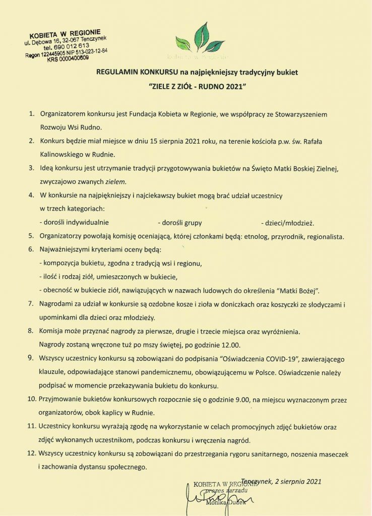 REGULAMIN KONKURSU na najpiękniejszy tradycyjny bukiet