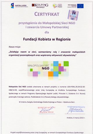 W dniach 5-6 marca 2015 Fundacja Kobieta w Regionie wzięła udział w konferencji założycielskiej Małopolskiej Sieci NGO, która odbyła się w Krakowie, w Hotelu Europejskim.